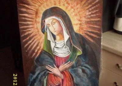 Przykładowe realizacje to: obrazy Matki Boskiej, świętych, sceny biblijne, a także stacje drogi krzyżowej malowane na poszczególnych promiennikach. To piękne i praktyczne rozwiązanie dla zakrystii, domów parafialnych i kaplic.
