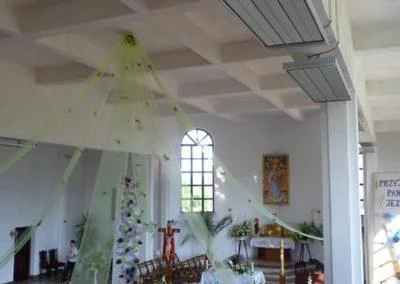 Druga metoda zakłada wykorzystanie promienników o mniejszych mocach – od 130 W do 900 W – umieszczanych bezpośrednio pod ławkami lub przy klęcznikach. Idealne również do ogrzewania prezbiterium, konfesjonałów, chóru, zakrystii czy salki parafialnej.